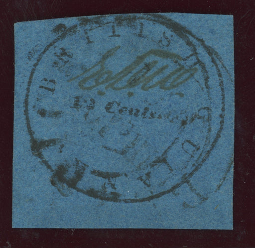 Sale SaleBritish Guiana 1850-51 12c blue ‘Cotton Reel’, Townsend type 'B (thick rule break over first 'I’ of BRITISH’), SG5£35,000.00| /British Guiana 1850-51 12c blue ‘Cotton Reel’, Townsend type 'B (thick rule break over first 'I’ of BRITISH’), SG5. A cut square example with three... View full details£35,000.00| /Sale