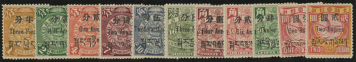 £3,500.00| /Tibet Chinese Post Offices 1911 set of 11 to 2r claret and bright yellow surcharged at Shanghai, SGC1/11. A fine and fresh mint set with part to la...