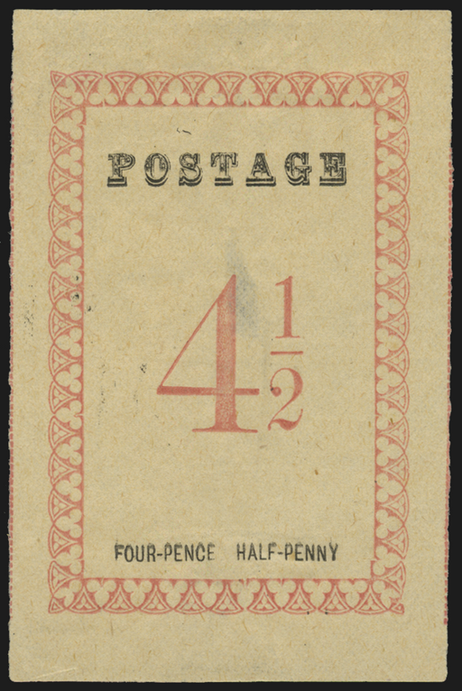 £7,500.00| /Madagascar 1886 4½d rose, "POSTAGE" 29½mm long, without stops after "POSTAGE" or value, variety WITHOUT HANDSTAMP, SG37a. Unused with fresh colour ...