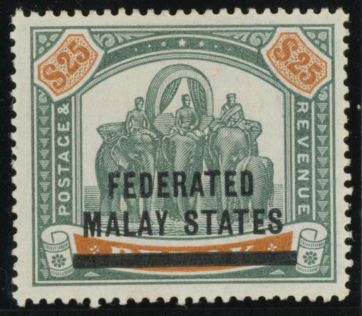 £17,000.00| /Malaya - Federated Malay States 1900 $25 green and orange, type 2 overprint on Perak, SG14. A fine and fresh mint example with large part original ...