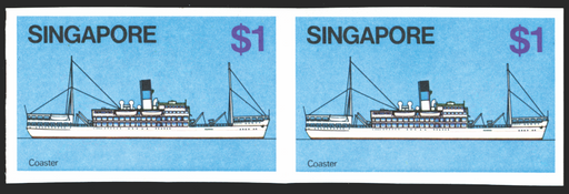 £300.00| /Singapore 1980-84 Ships $1, IMPERFORATE horizontal pair, SG373a. A pristine unmounted mint example with full original gum. A very scarce imperforat...