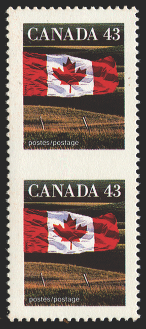 £550.00| /Canada 1989-2000 43c 'Flag over prairie', perforations 14½, vertical pair, ERROR IMPERFORATE BETWEEN, SG1357cc. A very fine unmounted mint example ...