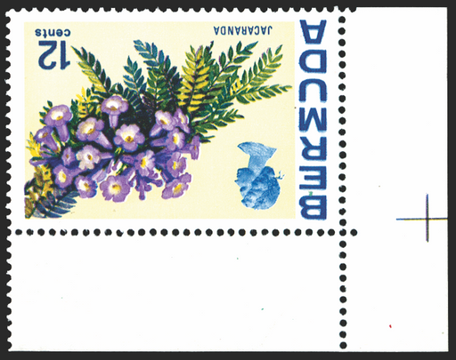 £70.00| /Bermuda 1974-76 12c 'Jacaranda', variety WATERMARK INVERTED, upper left corner example, SG305w. A very fine unmounted mint positional example with ...
