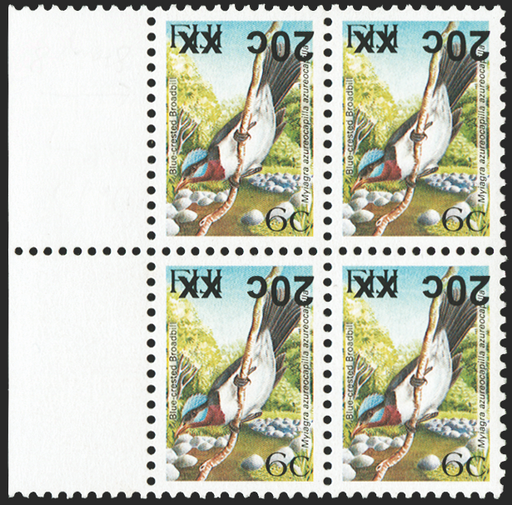 £180.00| /Fiji 2006-08 Local provisional 20c on 6c 'Birds', type Ic surcharge, error SURCHARGE INVERTED, left marginal block of 4, SGF1331a. A Post Office fr...