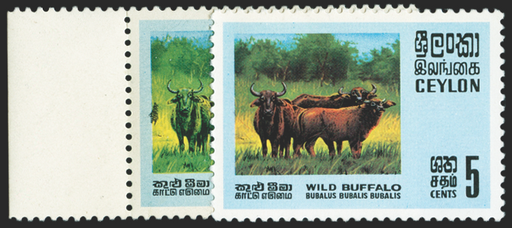 £120.00| /Ceylon 1970 Wildlife 5c 'Water Buffalo', error magenta omitted (leaving the animals green instead of brown), SG561a. A fine left marginal, unmounte...