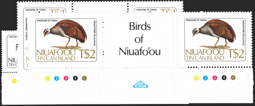 £75.00| /Tonga Niuafo'ou 1983 Birds set of 15 to 2p, matching lower marginal interpane pairs with inscription in gutter, SG27/41. A fine quality mint self-a...