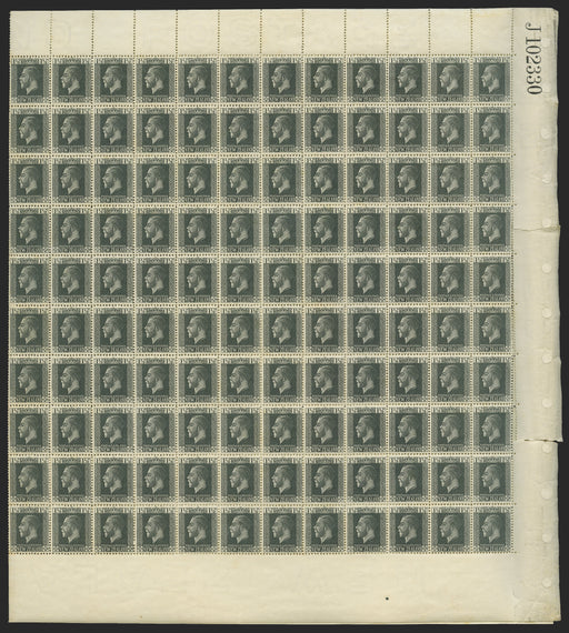 £950.00| /New Zealand 1915-33 1½d slate, watermark 43, complete folded sheet of 240 (24x10) with sheet number 'J102330', SG437. A fine unmounted mint complet...