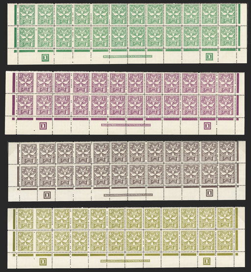 £950.00| /Malta 1967-70 set of 4 to 4d Postage Dues, watermark Maltese Cross, line perforations 12, each as a matching block of 24 (12x2) being the lower two...
