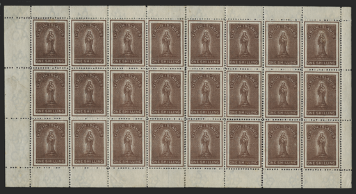 £850.00| /Virgin Islands 1887-89 1s brown, watermark CA, complete sheet of 24 (8x3), SG41. A fine mint complete sheet with original gum. The sheet was severe...