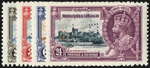 £110.00| /Trinidad & Tobago 1935 Silver Jubilee set of 4 to 24c, perforated 'SPECIMEN' (type B9), SG239s/42s. A brilliant quality mint set with original ...