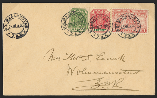 £95.00| /South Africa Transvaal Wolmaransstad 1900 (23 MAY) cover, self-addressed by Thos. S. Leask, with Transvaal 1895 1d red 'Penny Postage' and 1896-97 ...