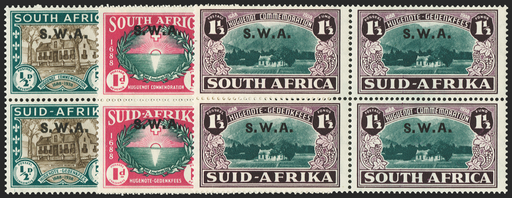£110.00| /South West Africa 1939 Huguenot set of 3 (½d + ½d brown and green, 1d + 1d green and carmine and 1½d + 1½d blue-green and purple), SG111/13. Very f...