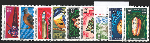 NEW HEBRIDES 1977 French issue new currency set of 9 to 500f on 10f, SGF247/55