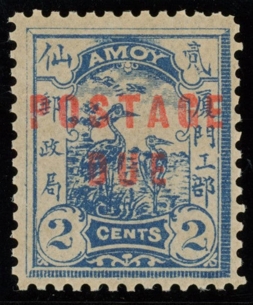Sale SaleChina 1895-96 (Shanghai) Amoy Local Post: 2c blue Postage Due, SGD8£1,500.00| /China 1895-96 (Shanghai) Amoy Local Post: "Herons in a Marsh" 1895-96 2c blue (stone I) Postage Due overprinted in red, SGD8. A fine and fresh mint... View full details£1,500.00| /Sale