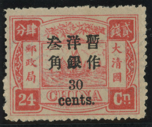 Sale SaleChina 1897 30c on 24ca rose-carmine large figure surcharge on Dowager Empress, SG56£3,000.00| /China 1897 (Mar) 30c on 24ca rose-carmine large figure surcharge on "60th Anniversary of the Dowager Empress" (first printing), SG56. A very fine a... View full details£3,000.00| /Sale
