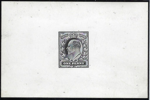 £2,500.00| /Great Britain 1902 1d Die Proof, SG219var. A very fine and fresh example printed by De La Rue in black on white glazed card (92 x 60mm) without end...