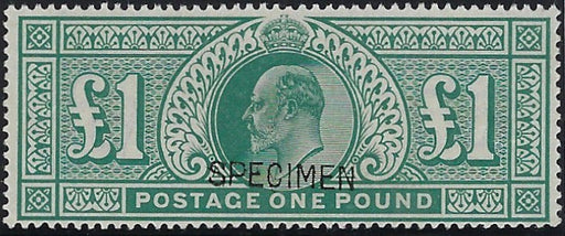 £1,250.00| /Great Britain 1902 £1 Dull blue green, SG266var. Superb unused original gum example printed by De La Rue, overprinted "SPECIMEN" type 16. Stamps is...