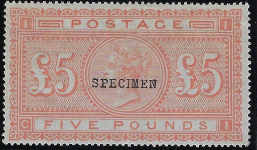 Great Britain 1882 £5 Orange Specimen (Blued paper), SG133