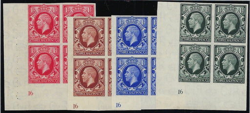£7,500.00| /Great Britain 1934 1½d "Photogravure" large format colour trials, SG441var. Very fine unused original gum set of four bottom left hand corner margi...