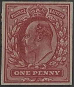 £1,500.00| /Great Britain 1906 1d Colour trial, SG219var. Very fine unused imperforate example with original gum printed in carmine rose on crown watermarked p...