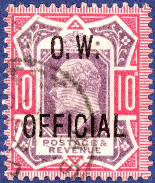£6,000.00| /Great Britain 1902 10d dull purple & carmine (O.W. Official), SGO40. A superb used example of this rare government departmental issue neatly ca...