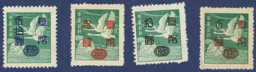 China Taiwan 1951 Whistling Swans silver yuan surcharges set of 4, SG129/32
