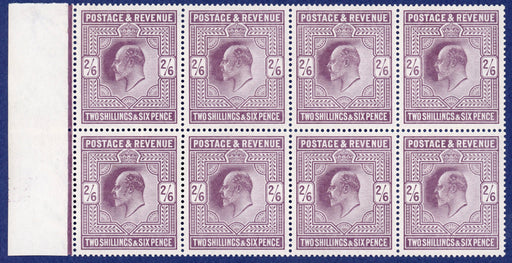 £5,600.00| /Great Britain 1905 2s6d dull purple (C), SG262. A superb well centred unmounted mint, with full original gum, left hand marginal block of eight pri...