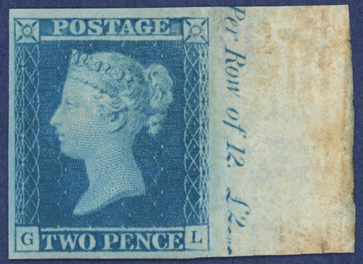 £7,500.00| /Great Britain 1841 2d pale blue Plate 3, SG13. A superb unused, original gum, four margin right hand marginal example with full deckle edge and ins...