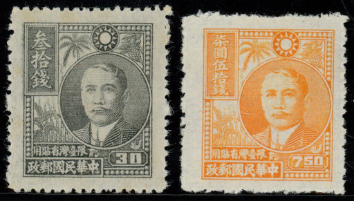 £1,600.00| /China Taiwan 1947 Sun Yat-sen 'Palm trees', 30c grey and $7 50 orange, prepared for use but not issued, without surcharge. Fine and fresh unused ex...