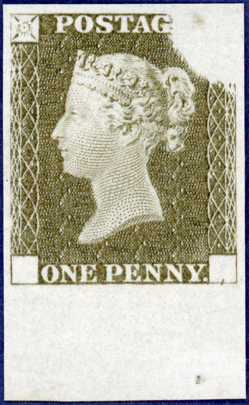 £5,000.00| /Great Britain 1840 1d Rainbow trial (20 November 1840), State 3, SGDP20d. A very fine imperforate four margin bottom marginal example printed in dr...