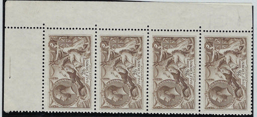 £2,500.00| /Great Britain 1918 2s6d Pale brown. SG415a. A superb unmounted o.g. corner marginal vertical strip of four printed by Bradbury Wilkinson from plate...