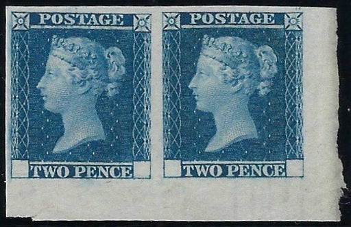 £3,500.00| /Great Britain 1841 2d Blue. SGDP43. Very fine unused bottom right hand corner marginal horizontal pair from the small trial sheet of twelve without...