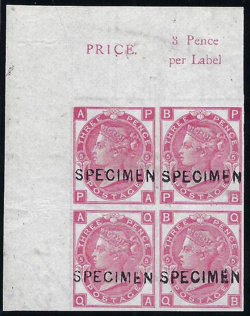 £2,100.00| /Great Britain 1867 3d rose Plate 5, SG103var. A superb unmounted mint, with full original gum, top left hand marginal imperforate block of four let...