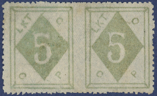 £1,500.00| /China 1899 (9 Jan) Shanghai Wei Hai-Wei Courier Post: 5c emerald, horizontal pair imperforate between, SG4b. A fresh unused pair without gum. A few...