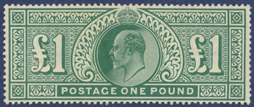 £2,000.00| /Great Britain 1902 £1 dull blue green, SG266. A very fine and fresh well centred unused example with original gum, printed by De La Rue. GB Special...