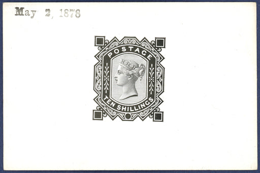 £3,500.00| /Great Britain 1878 10s Die Proof, SG128var. A very fine example printed in black on white glazed card (91x60mm) dated at upper left "May 2, 1878". ...