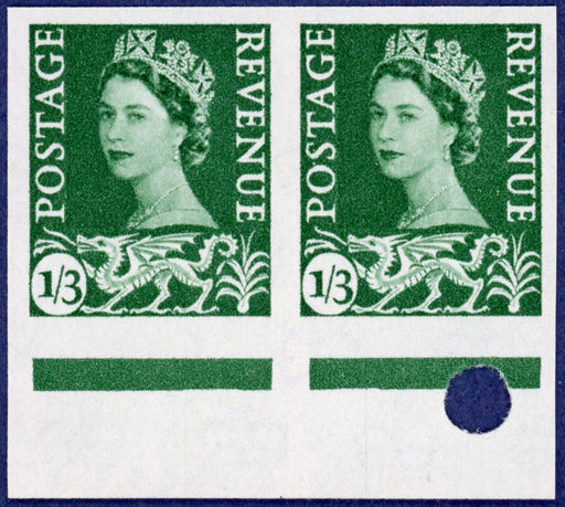 £4,000.00| /Great Britain 1958 1s3d Green (Wales, Whiter. paper), SGW5var. A superb unmounted mint bottom marginal horizontal pair, with full original gum, of ...