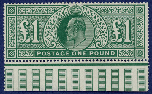 £3,000.00| /Great Britain 1911 £1 deep green, SG320. A superb unmounted mint bottom interpanneau marginal example, with full original gum, printed at Somerset ...