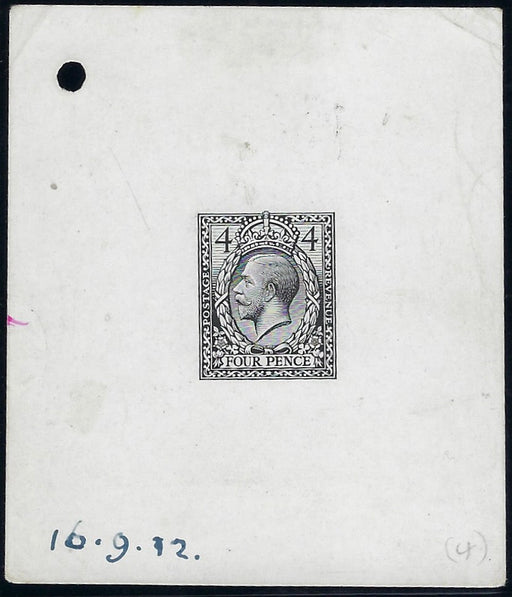 Great Britain 1912 4d Die Proof of Eve's Wreath Design, SG379var