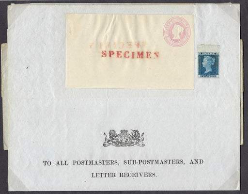 £8,000.00| /Great Britain 1841 Postal Notice. SGPN3. Very fine complete example bearing a 1d red brown PL10 and a top marginal 2d trial with blank corner lette...