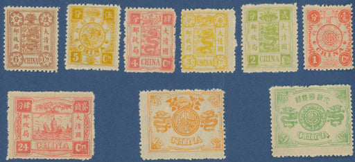£7,500.00| /China 1897 60th Birthday of the Dowager Empress "Mollendorf" special printing on thicker unwatermarked paper set of 9 to 24ca deep rose-red, SG16/2...
