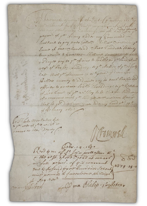 £9,995.00| /A scarce document signed by Oliver Cromwell and dated 1650 With military content, regarding payment of New Model Army troops The man who changed ...