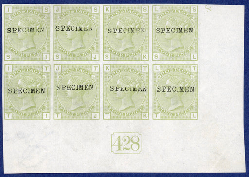 Great Britain 1877 4d sage green Plate 15 Specimens, SG153var