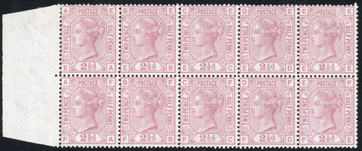 £6,950.00| /Great Britain 1879 2½d rosy mauve Plate 6, SG141. A very fine and fresh unused, with original gum, left hand marginal block of ten, lettered "EA-FE...