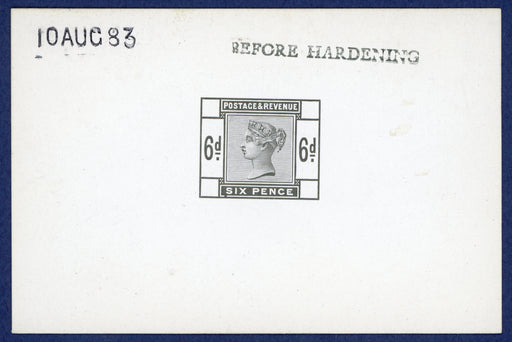 £1,700.00| /Great Britain 1883 6 die proof, SG 194var. A very fine proof printed in black on white glazed card (92x60mm) without corner letters endorsed "BEFOR...