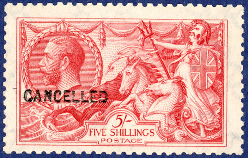 £1,600.00| /Great Britain 1920 5s rose red "Seahorses" (23mm high, Royal cypher paper trials), SG416var. A very fine unmounted mint example with full original ...