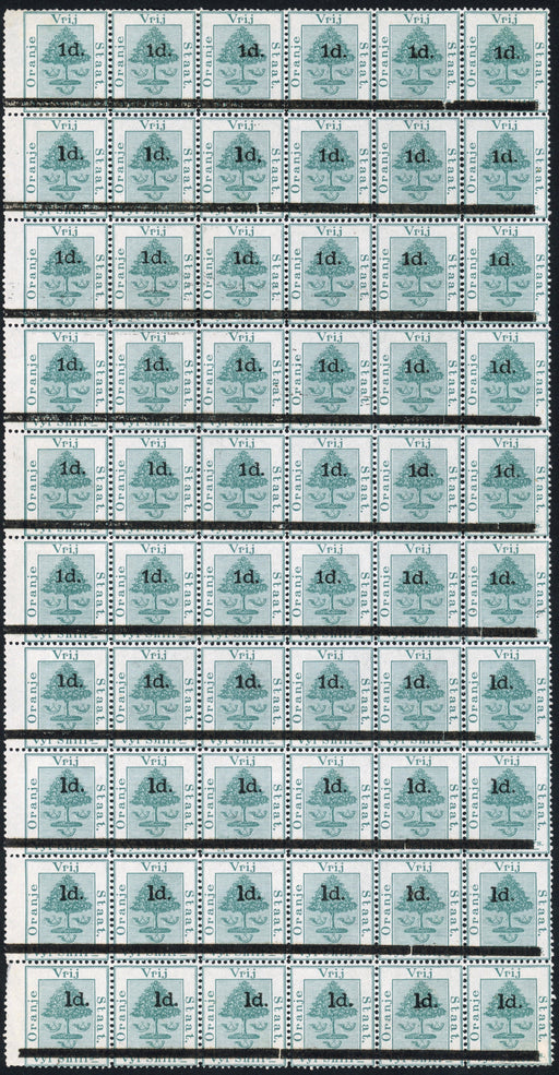 £4,950.00| /South Africa Orange Free State 1881 (19 May) 1d on 5s green, intact right pane of 60 (6x10) with margin at left, showing the right half of the seco...