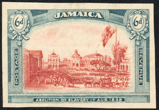 Jamaica 1921 6d red and blue-green 'Abolition of Slavery' imperforate plate proof