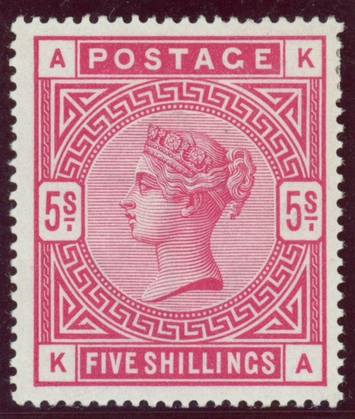 £1,000.00| /Great Britain 1884 5s rose, SG180. A very fine and fresh unused example with original gum, lettered 'KA'. Lovely vibrant colour. The design of this...