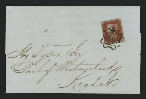 £1,000.00| /Great Britain 1841 1d red-brown Plate 34, SG8. An exceptionally fine used four margin example lettered 'TI' tied to a clean unfolded entire letters...